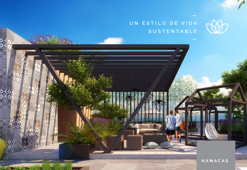 La zona de hamacas, huerto orgánico y pet zone, además de un green roof top son parte de las amenidades exteriores que junto a un sky lounge y otros espacios de entretenimiento fomentan la vida natural.